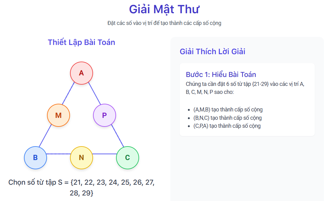 Giải Mật Thư Giải Mật Thư Đặt các số vào vị trí để tạo thành các cấp số cộng Thiết Lập Bài Toán A M…